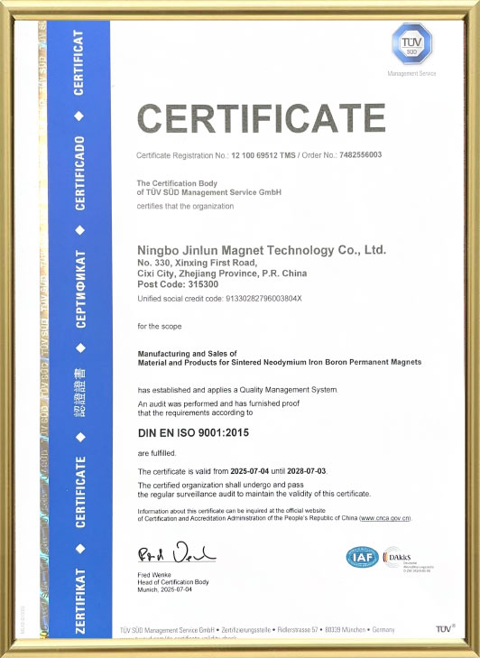 Jinlun Magnet specialiserat på forskning och utveckling, produktion och försäljning av högpresterande permanenta sällsynta jordartsmetaller magnetmaterial.